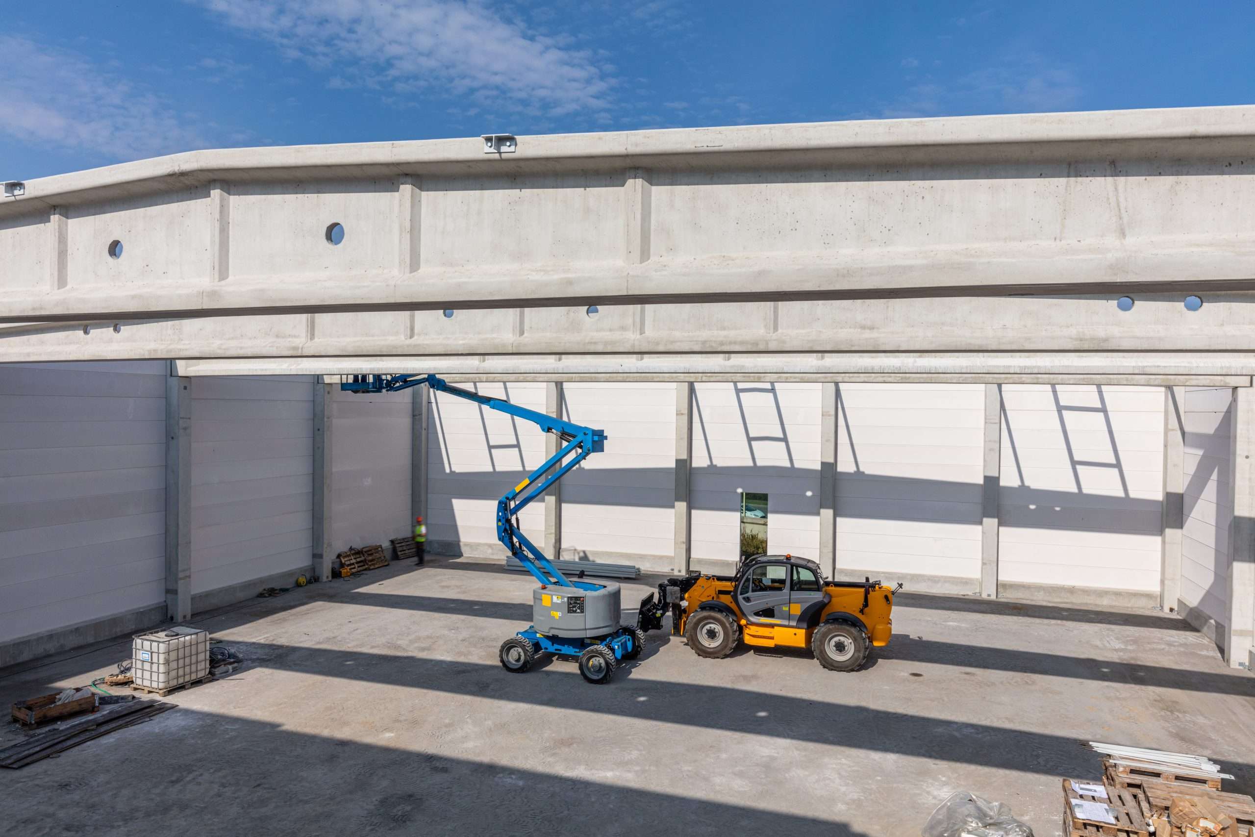 Warehouse construction with industrial vehicles.